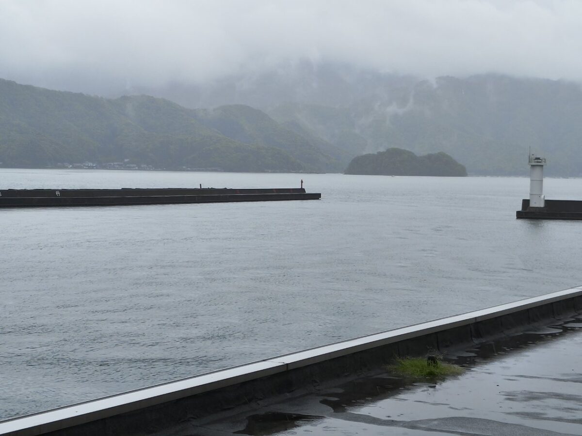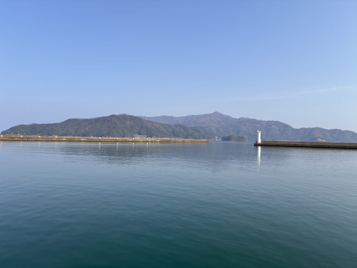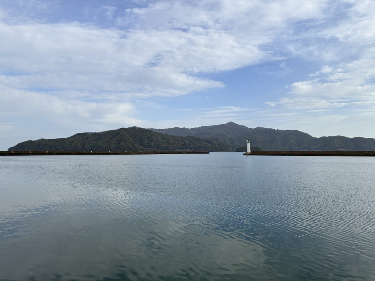 西津漁港より久須夜ヶ岳を望む