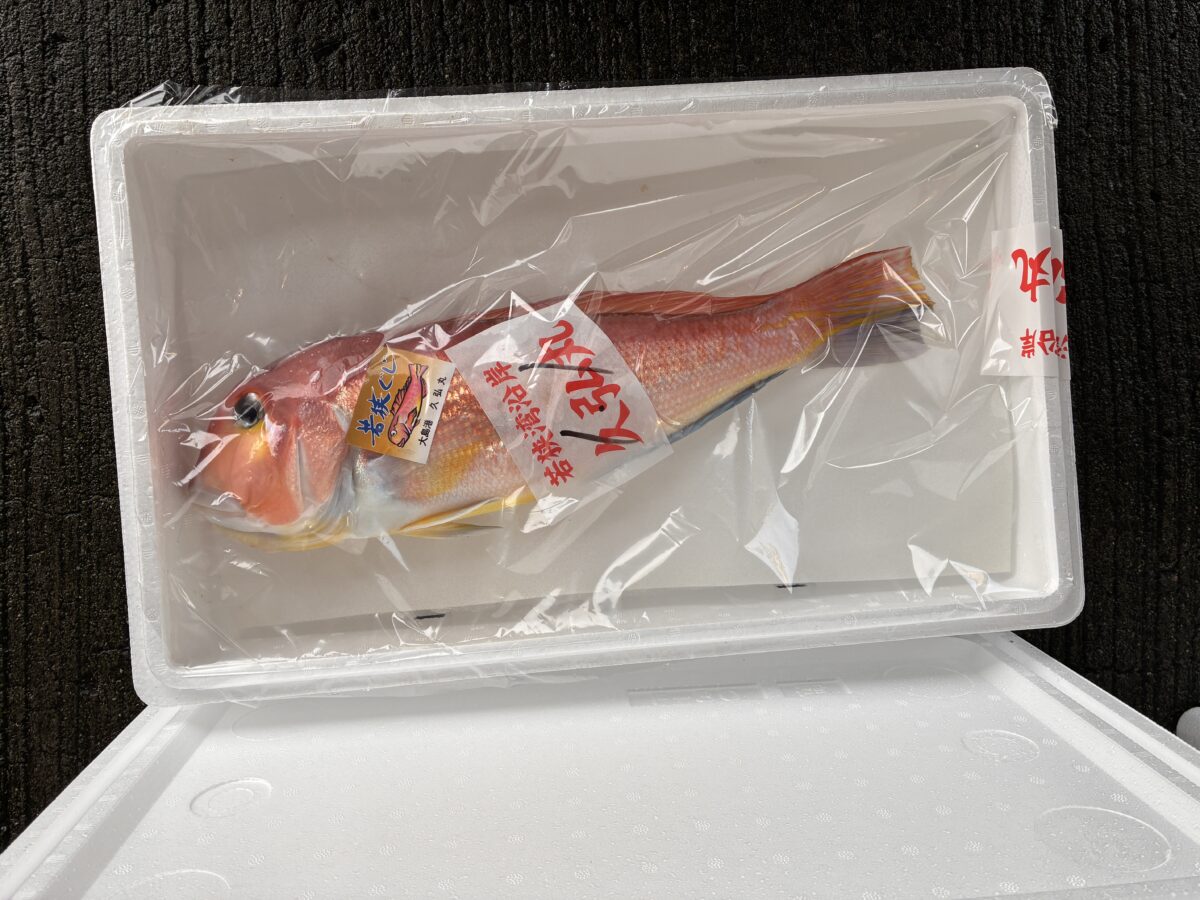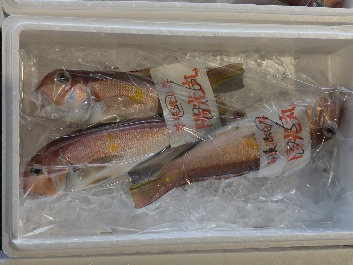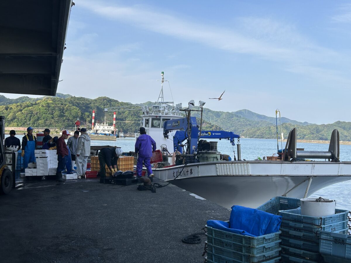 宇久漁港での魚の箱詰め作業 -