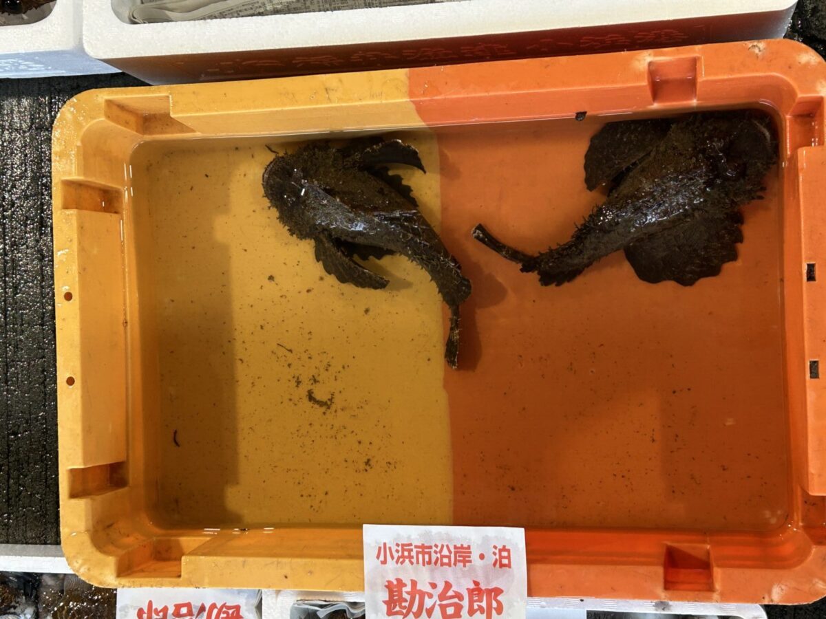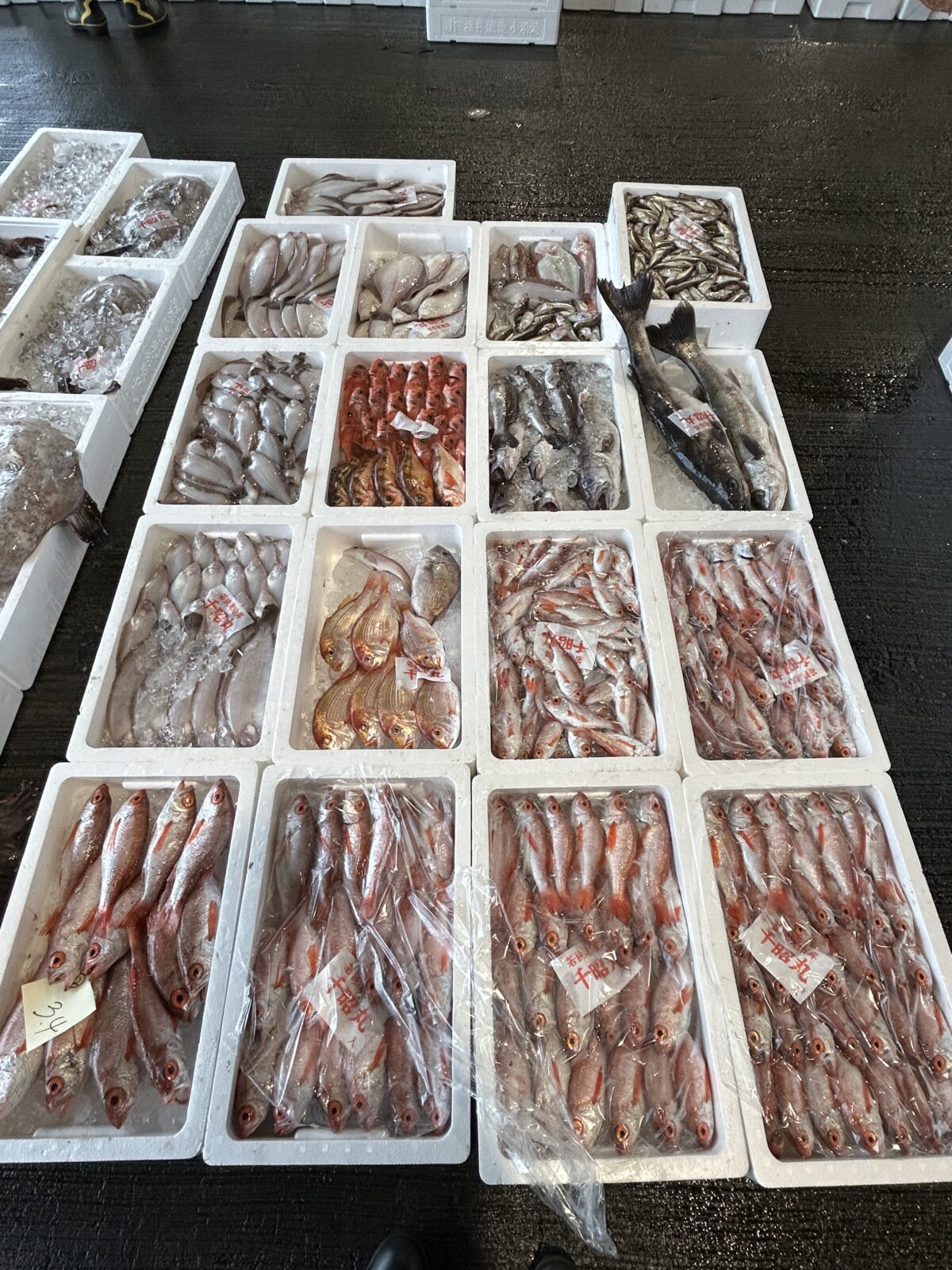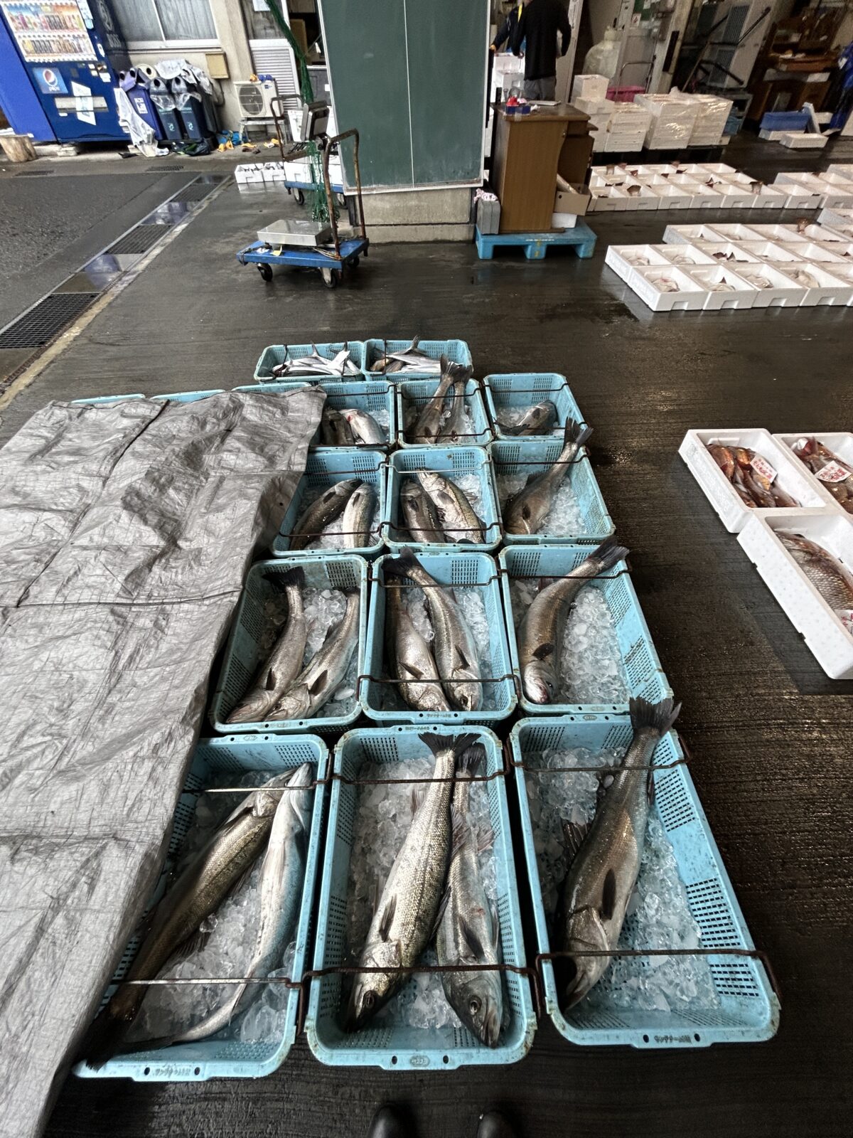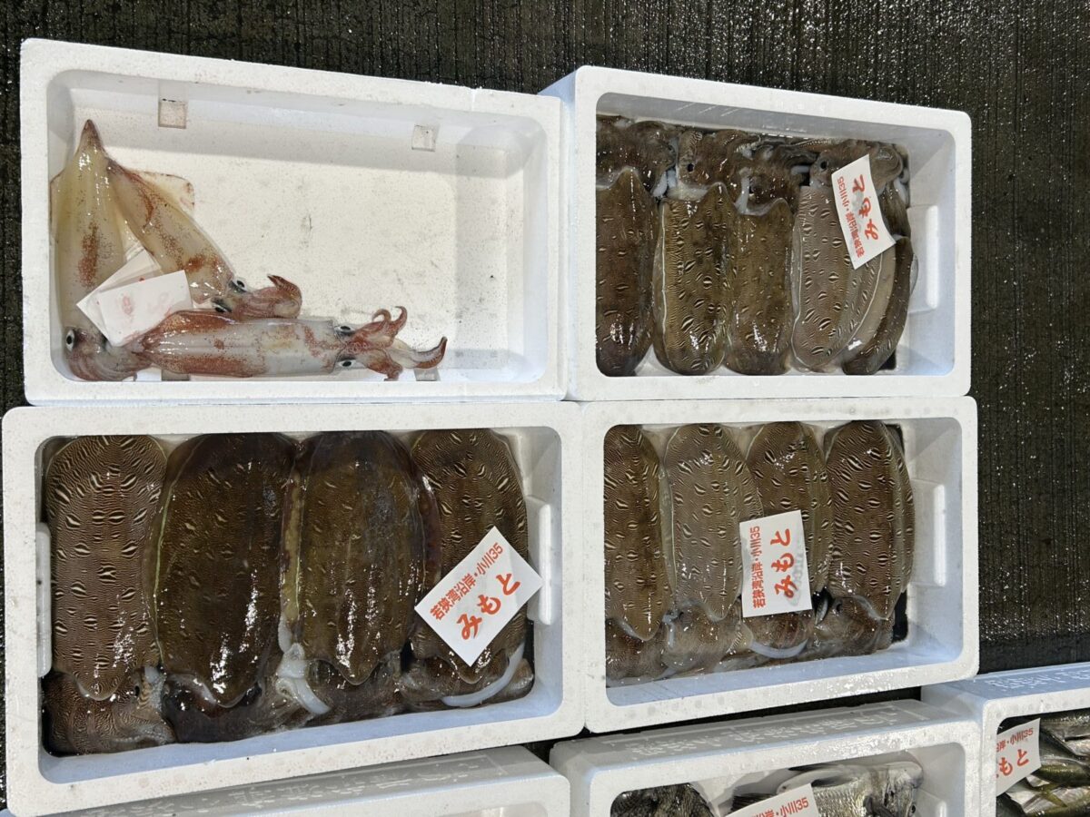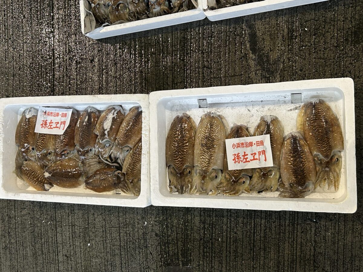 おはようございます。今朝は雨ですね。たくさん魚が水揚げされています。ぜひお魚センターへ足を運んでみてください。