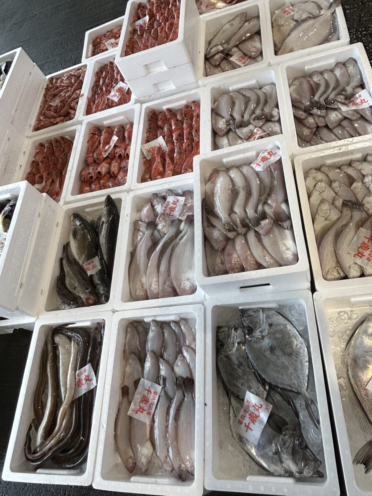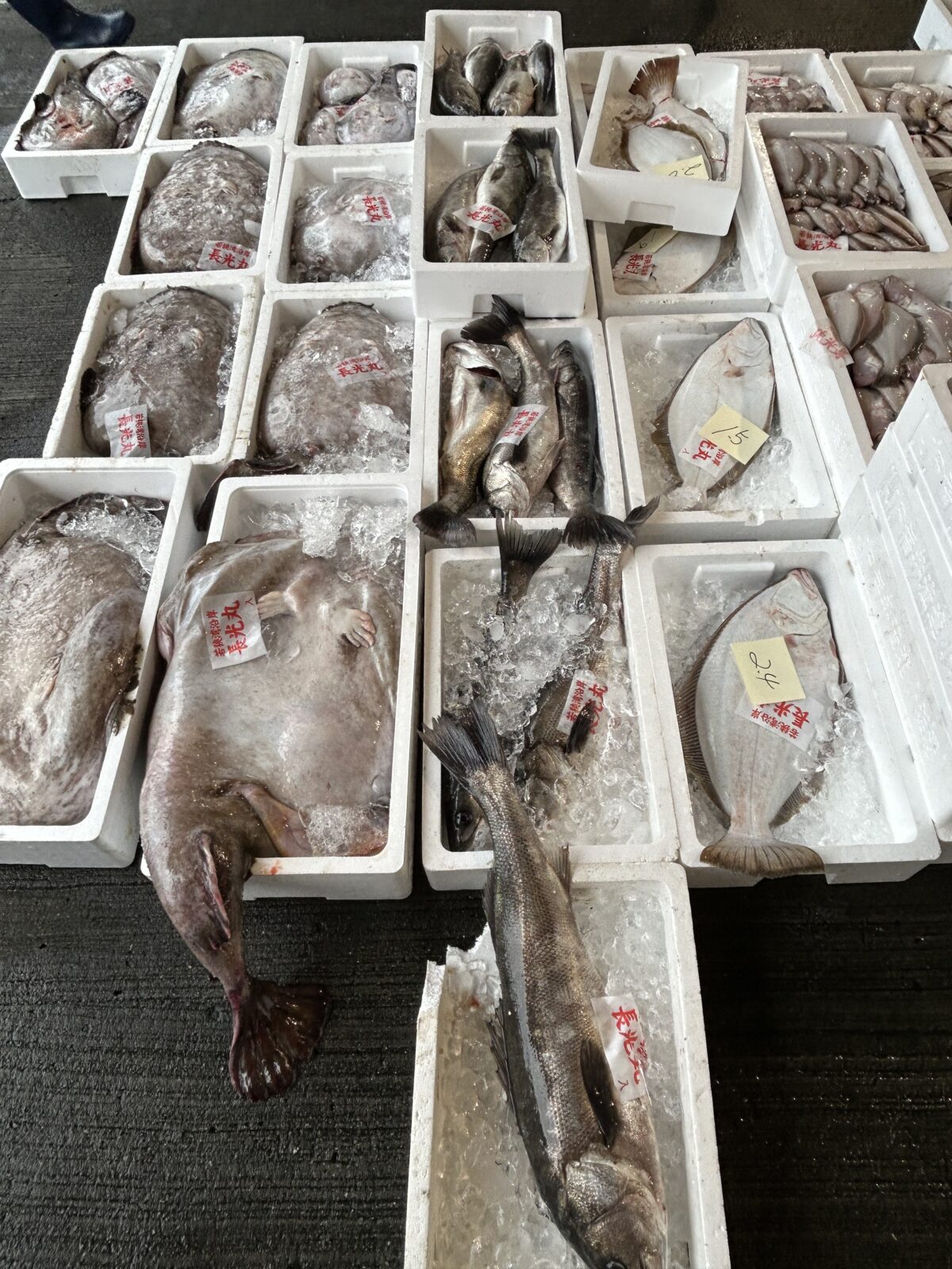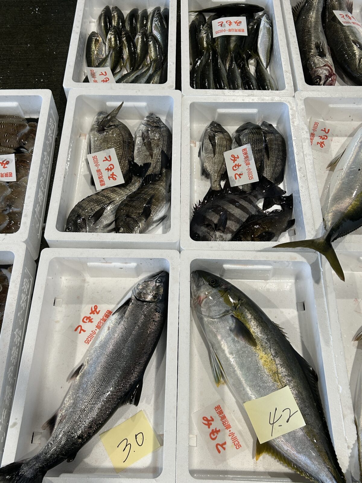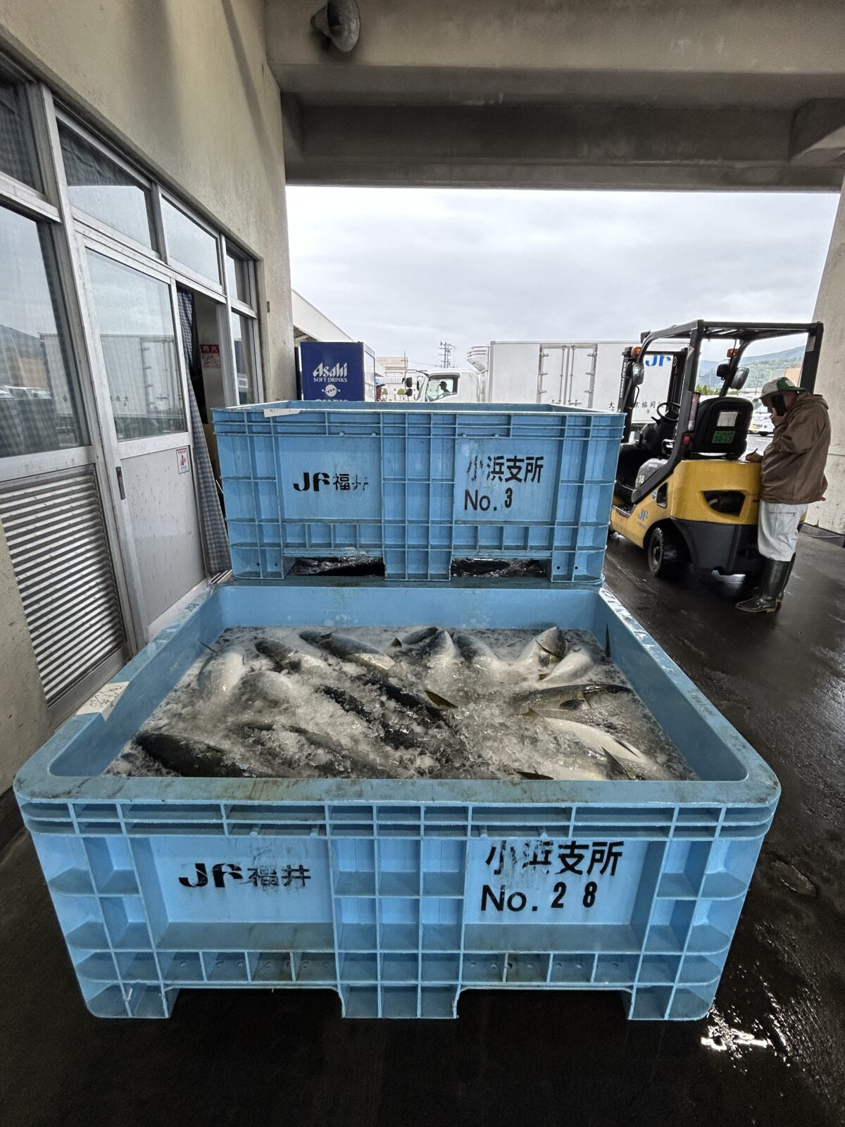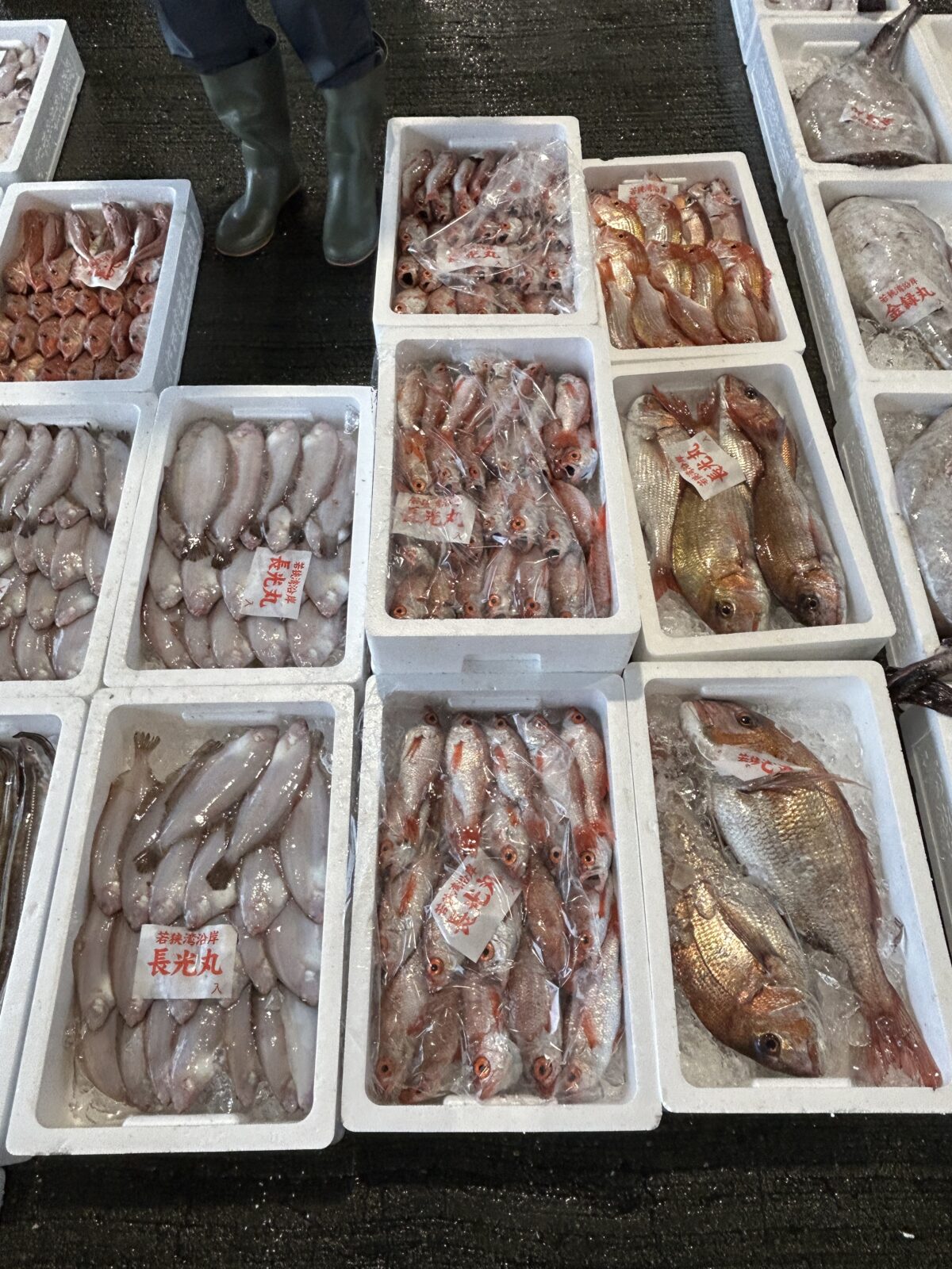 おはようございます。今朝は雨ですね。たくさん魚が水揚げされています。ぜひお魚センターへ足を運んでみてください。