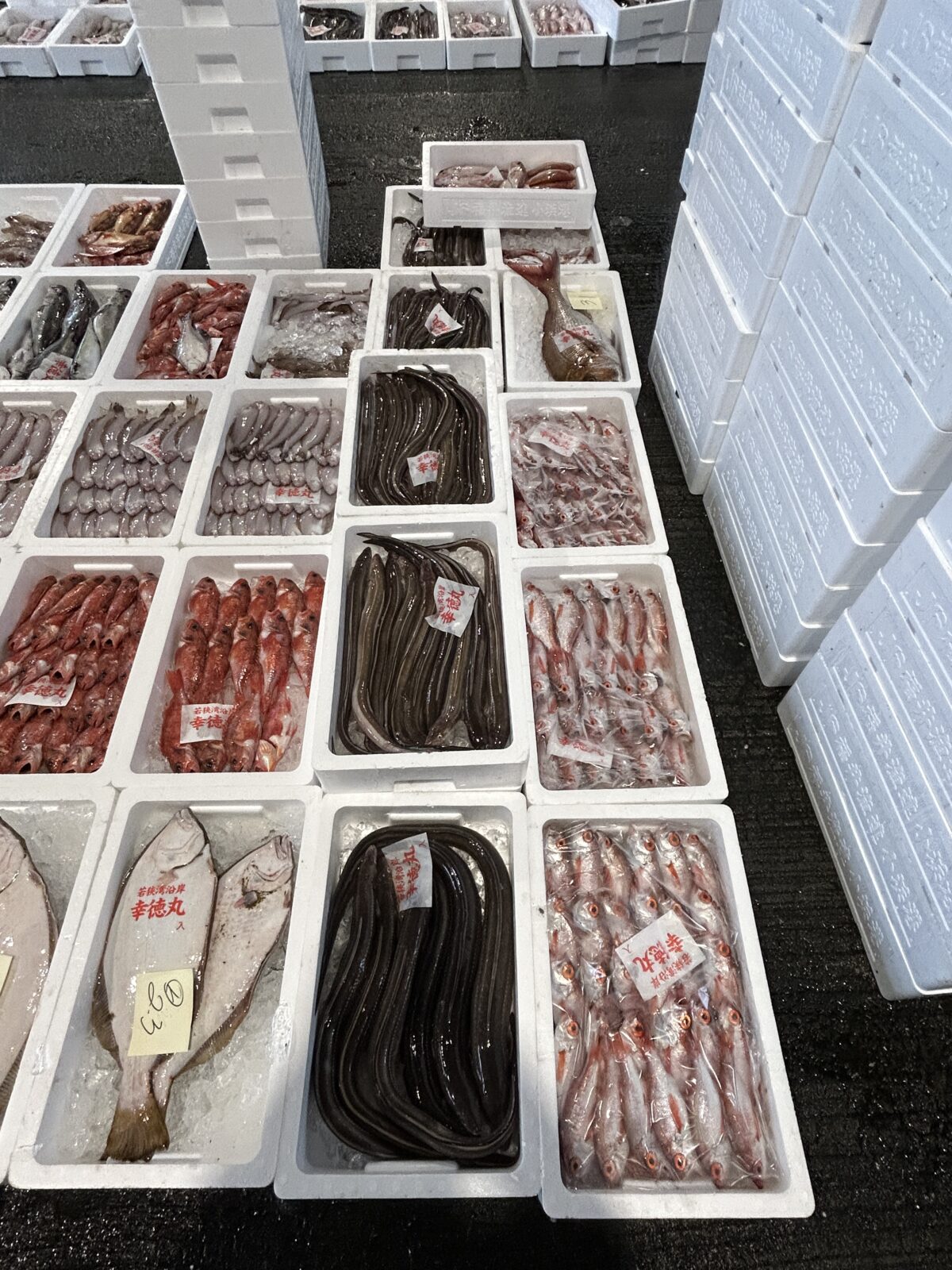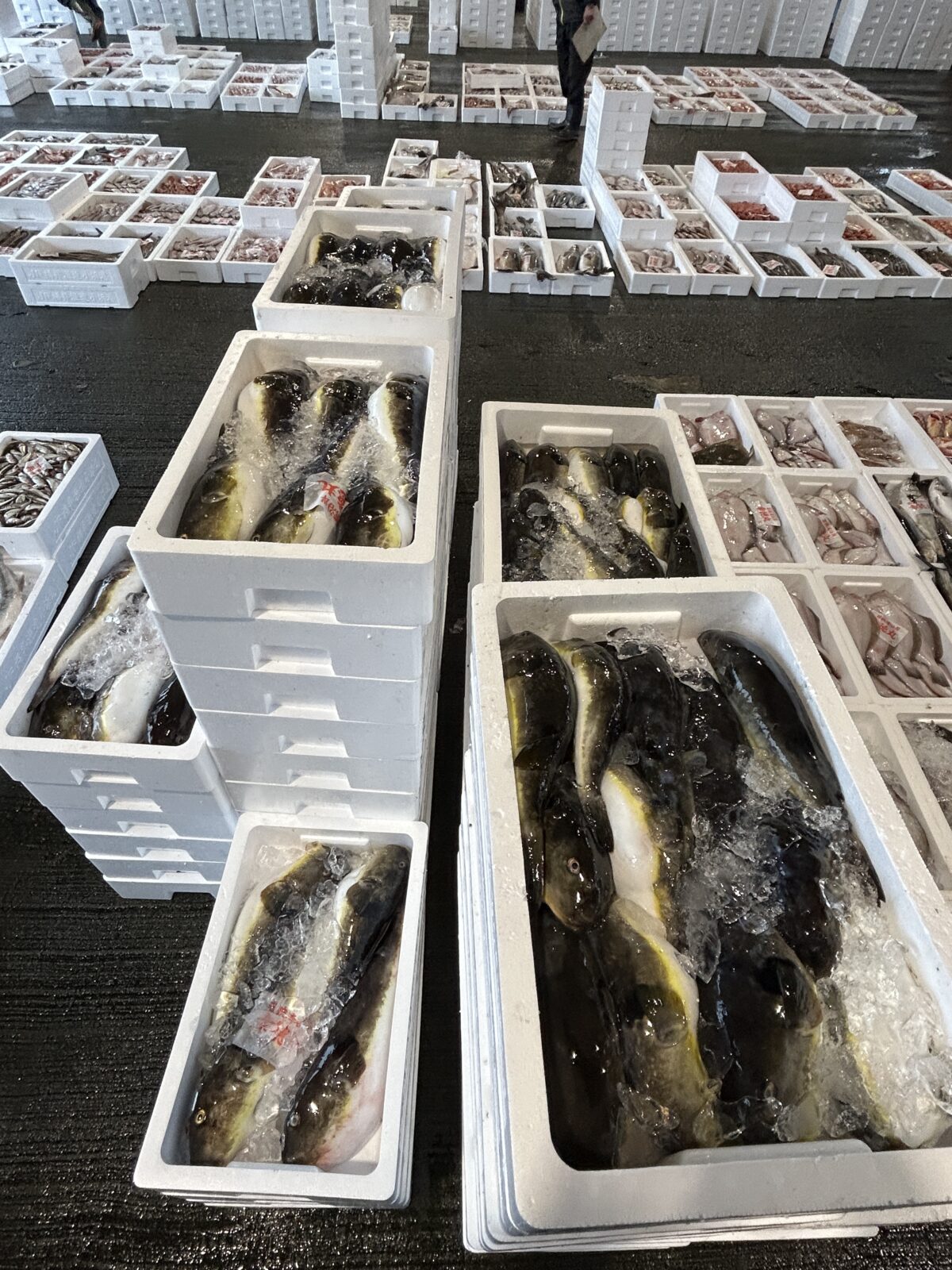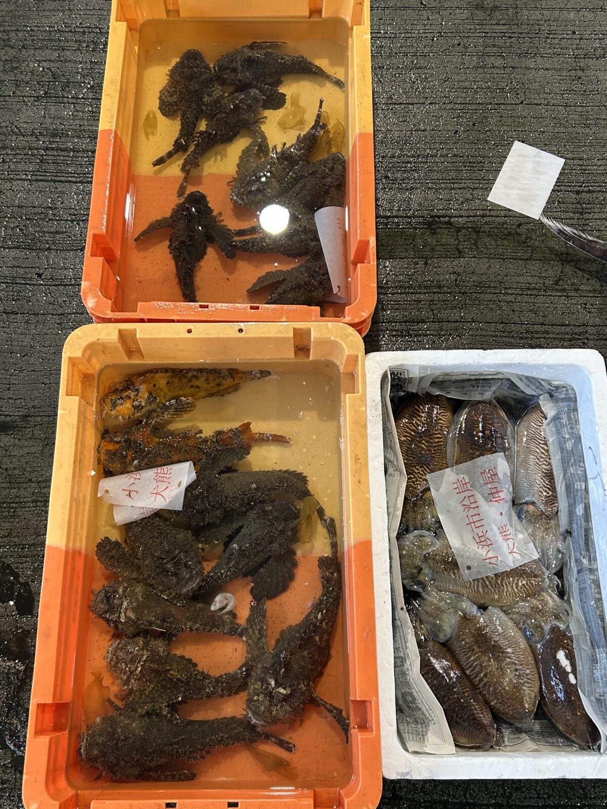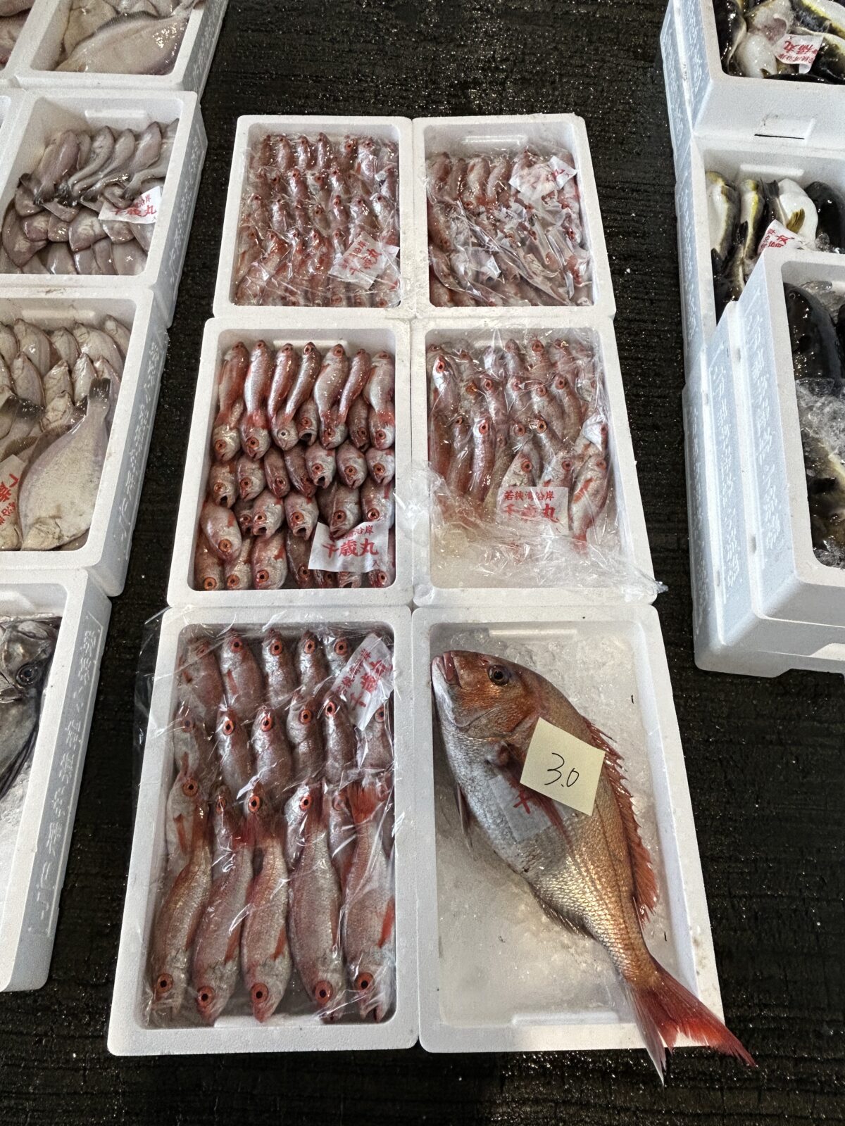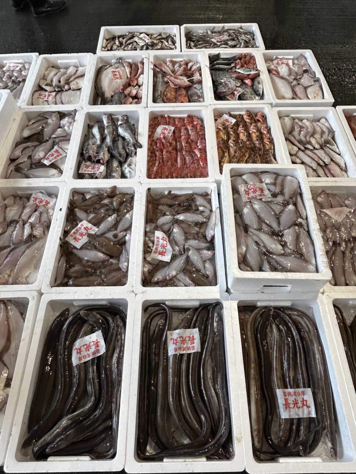 おはようございます。今朝は雨ですね。たくさん魚が水揚げされています。ぜひお魚センターへ足を運んでみてください。